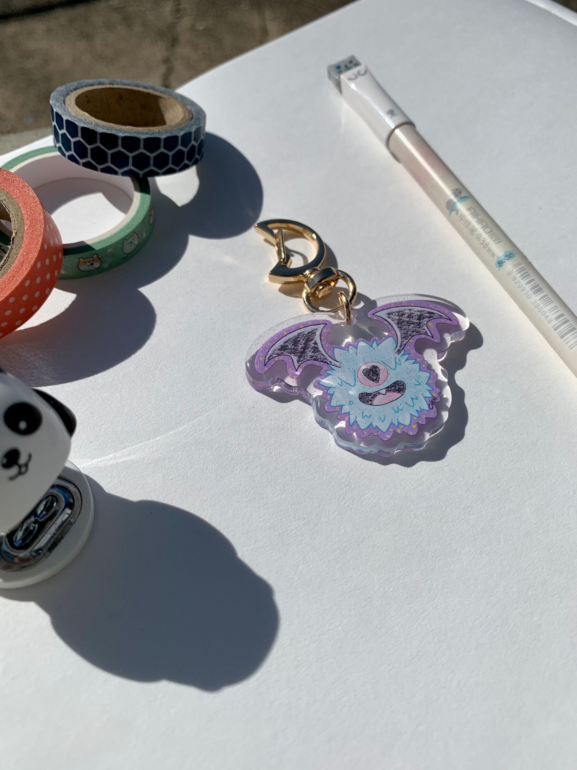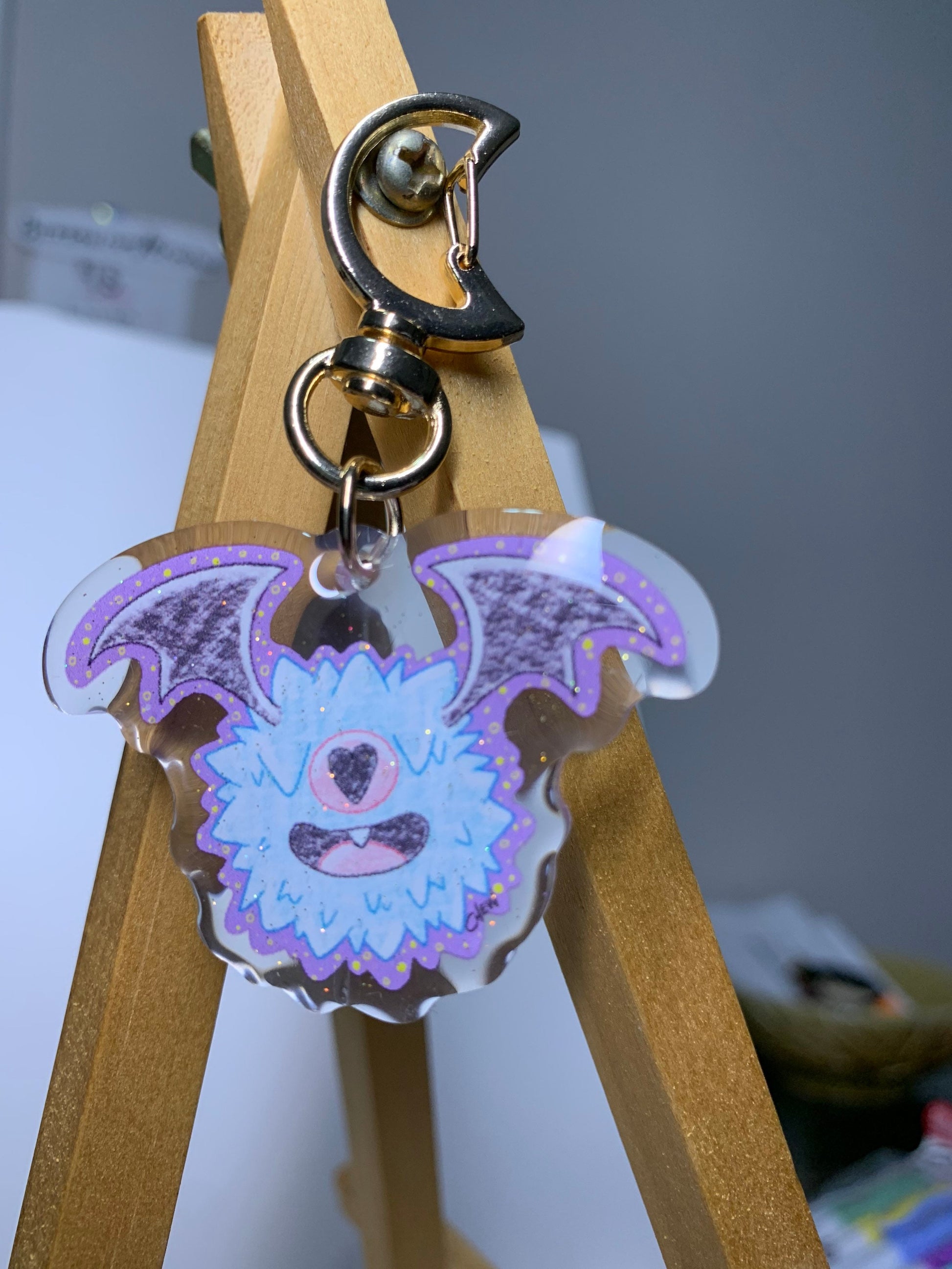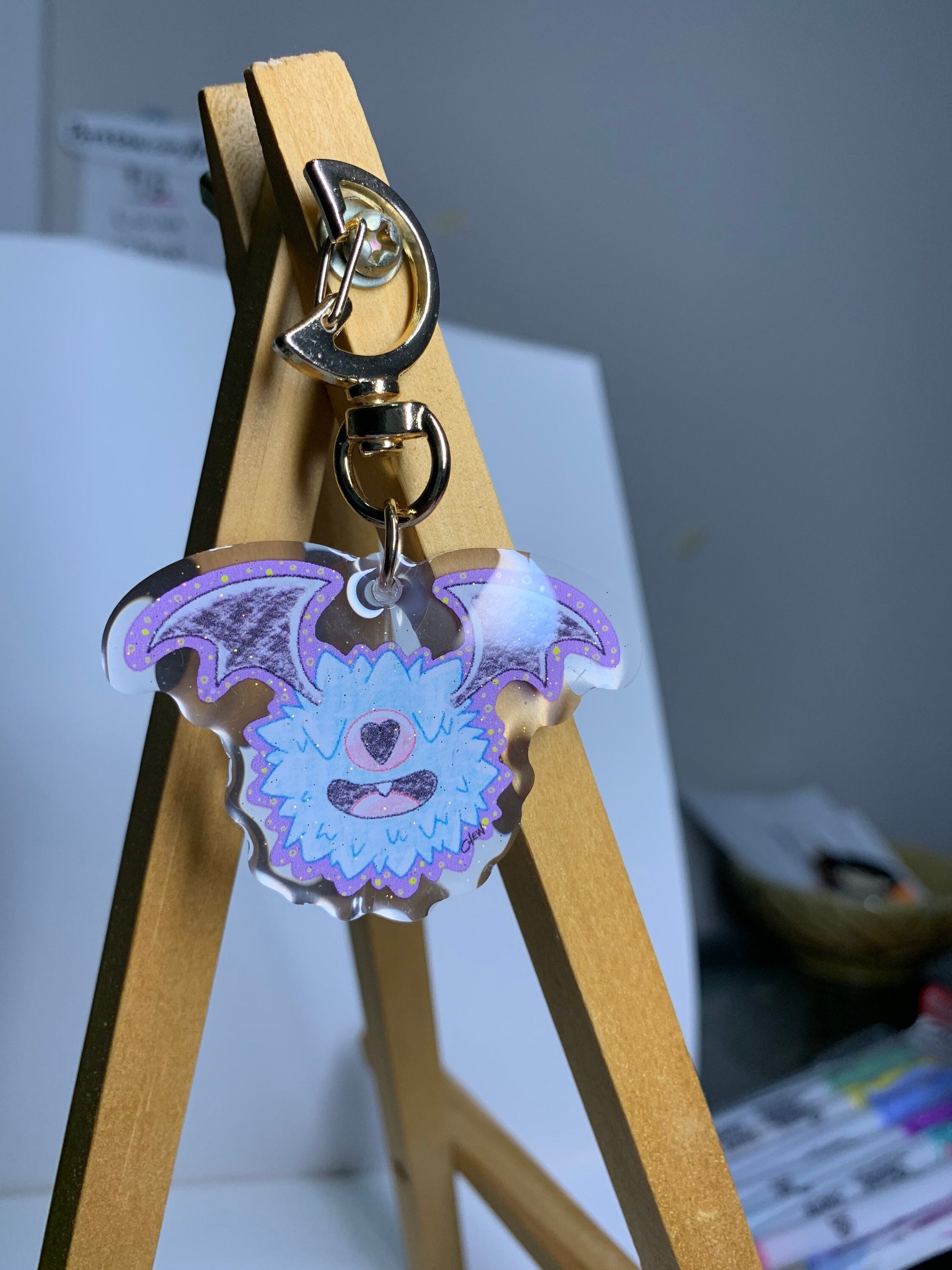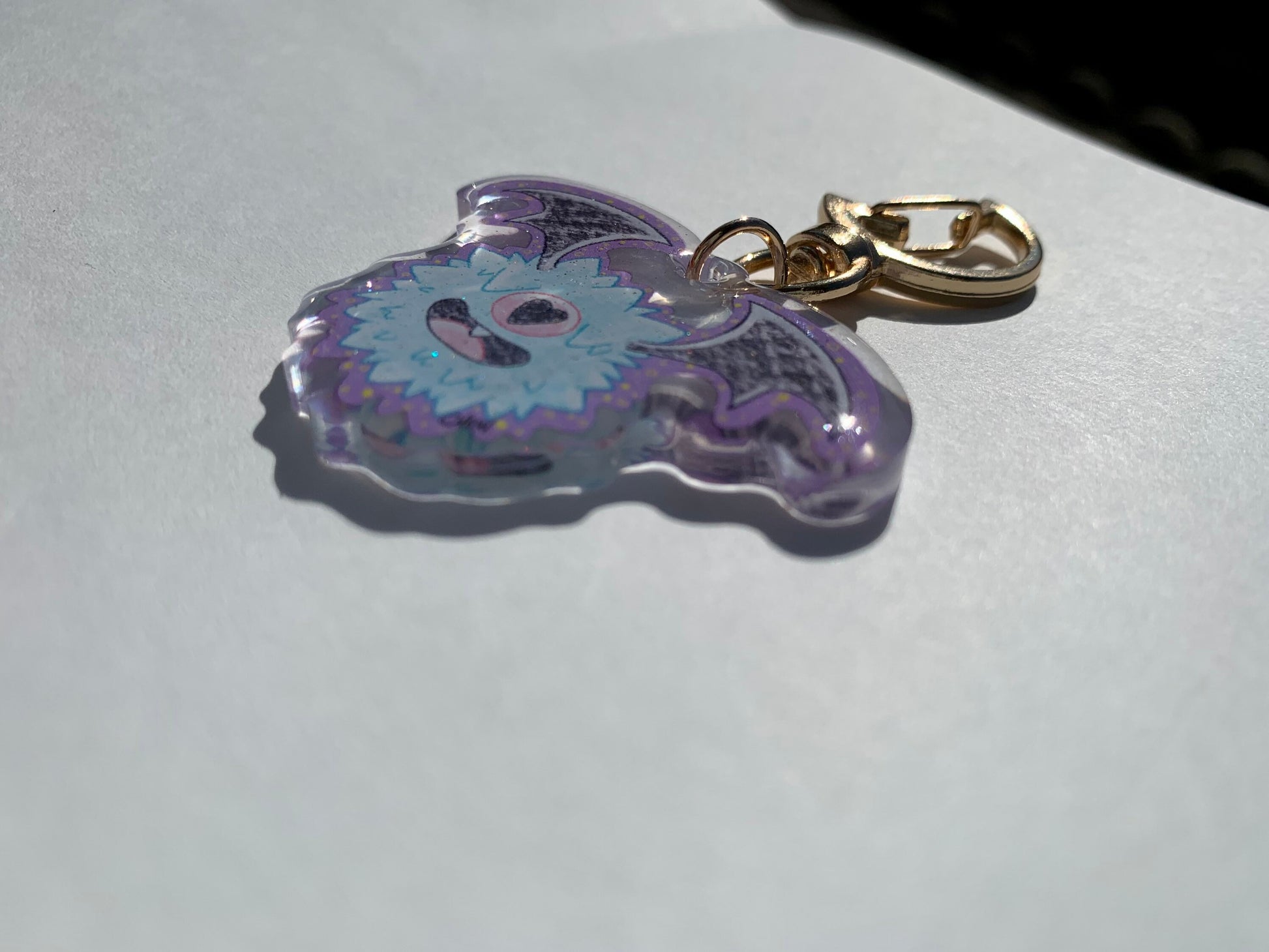 From the top of the clip to the bottom of the charm it is around 2.8 x 2 inch in size. The charm itself is 2 x 1.5 inch and the design is double sided on the back as well.