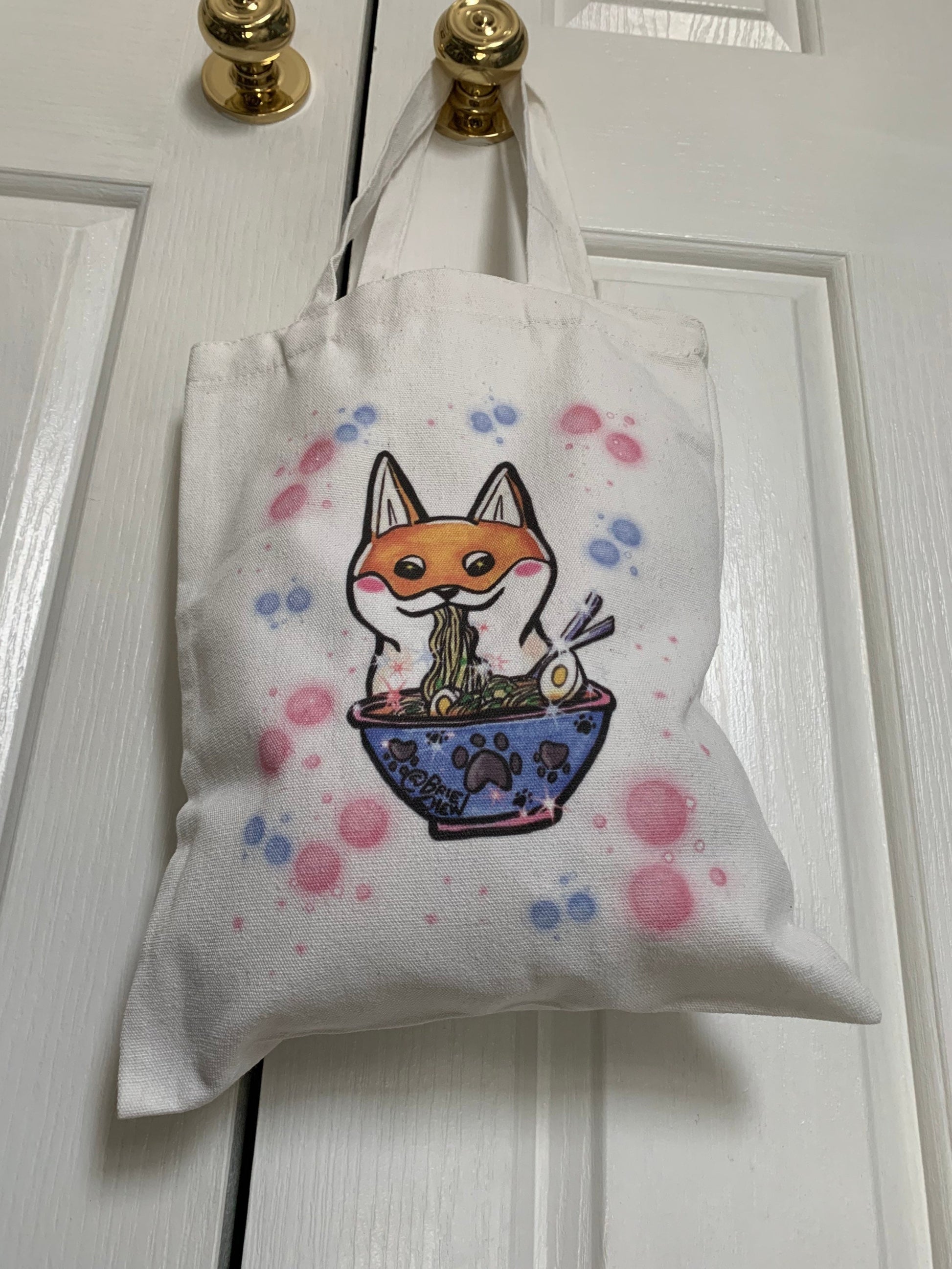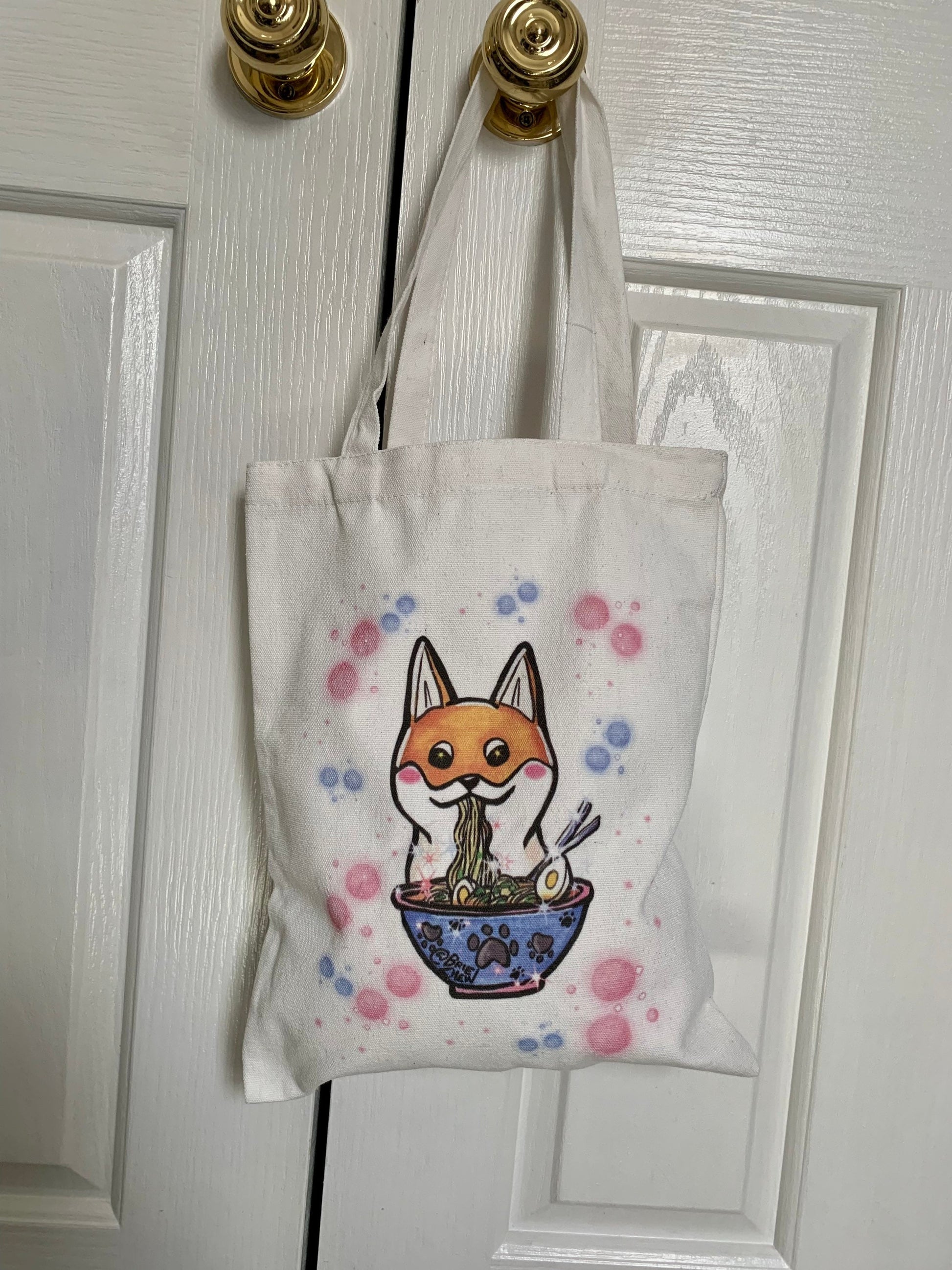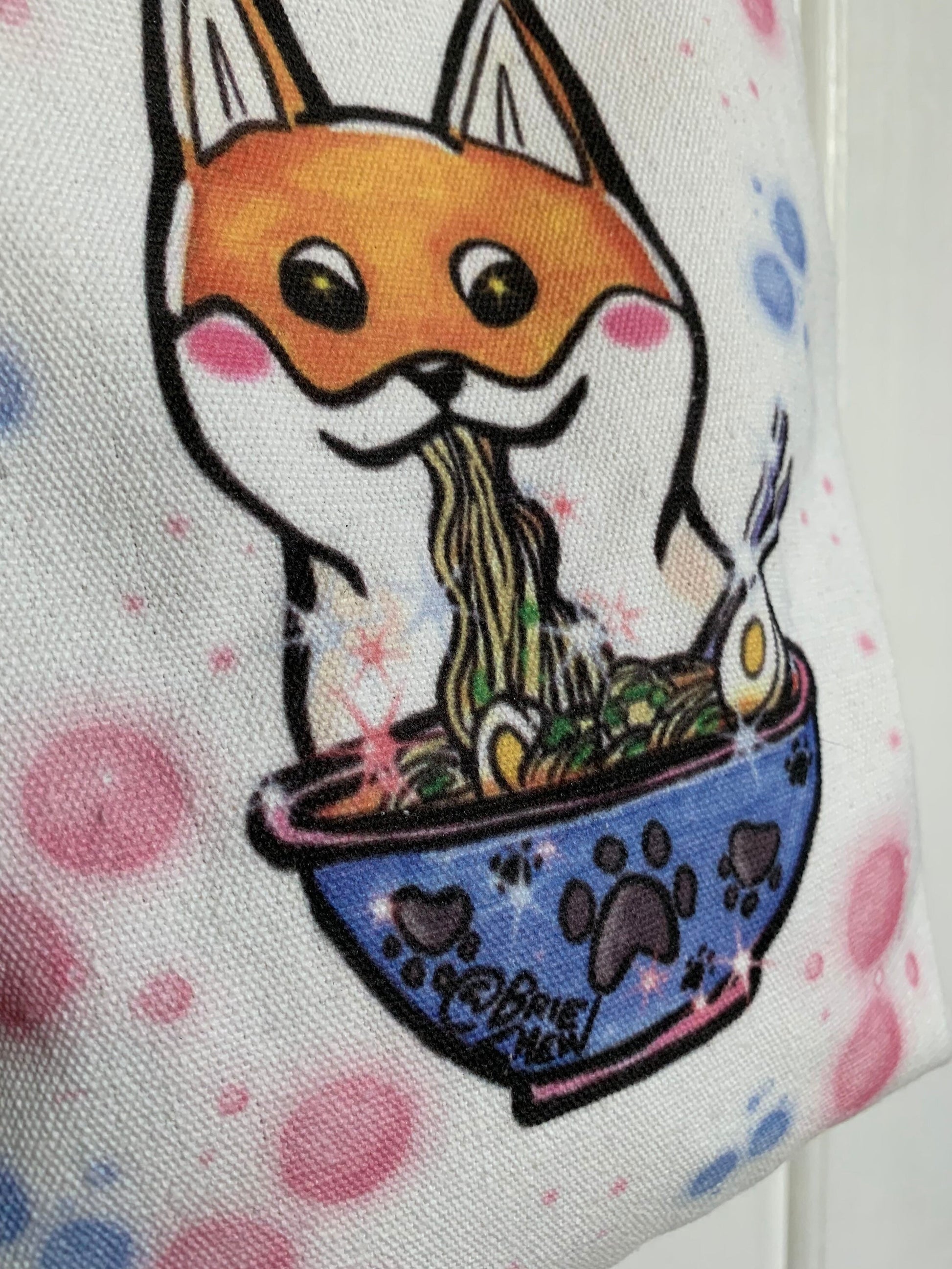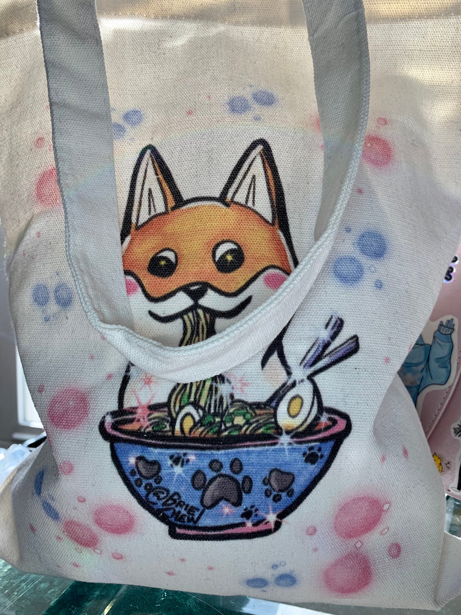The perfect lunch tote to show your love for both Shiba & ramen 💖 The tote itself is cotton canvas and around 11 x 13 inch and around 4inch in depth. Each order comes with surprise stickers ✨
