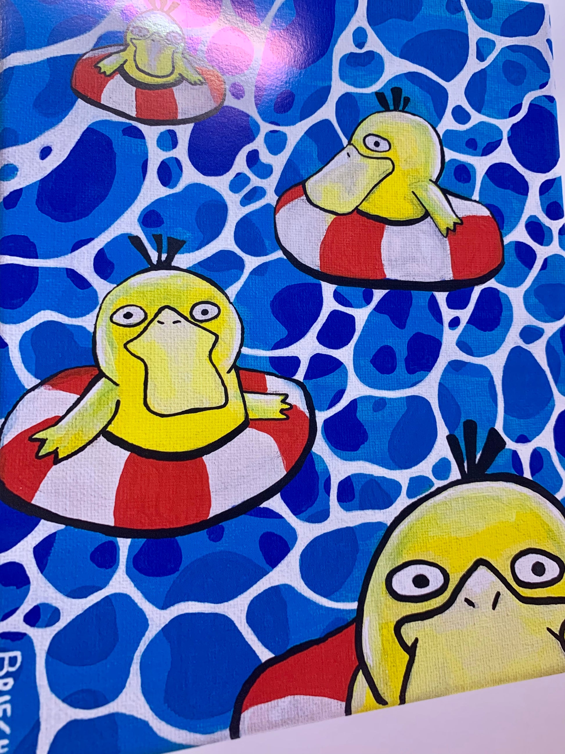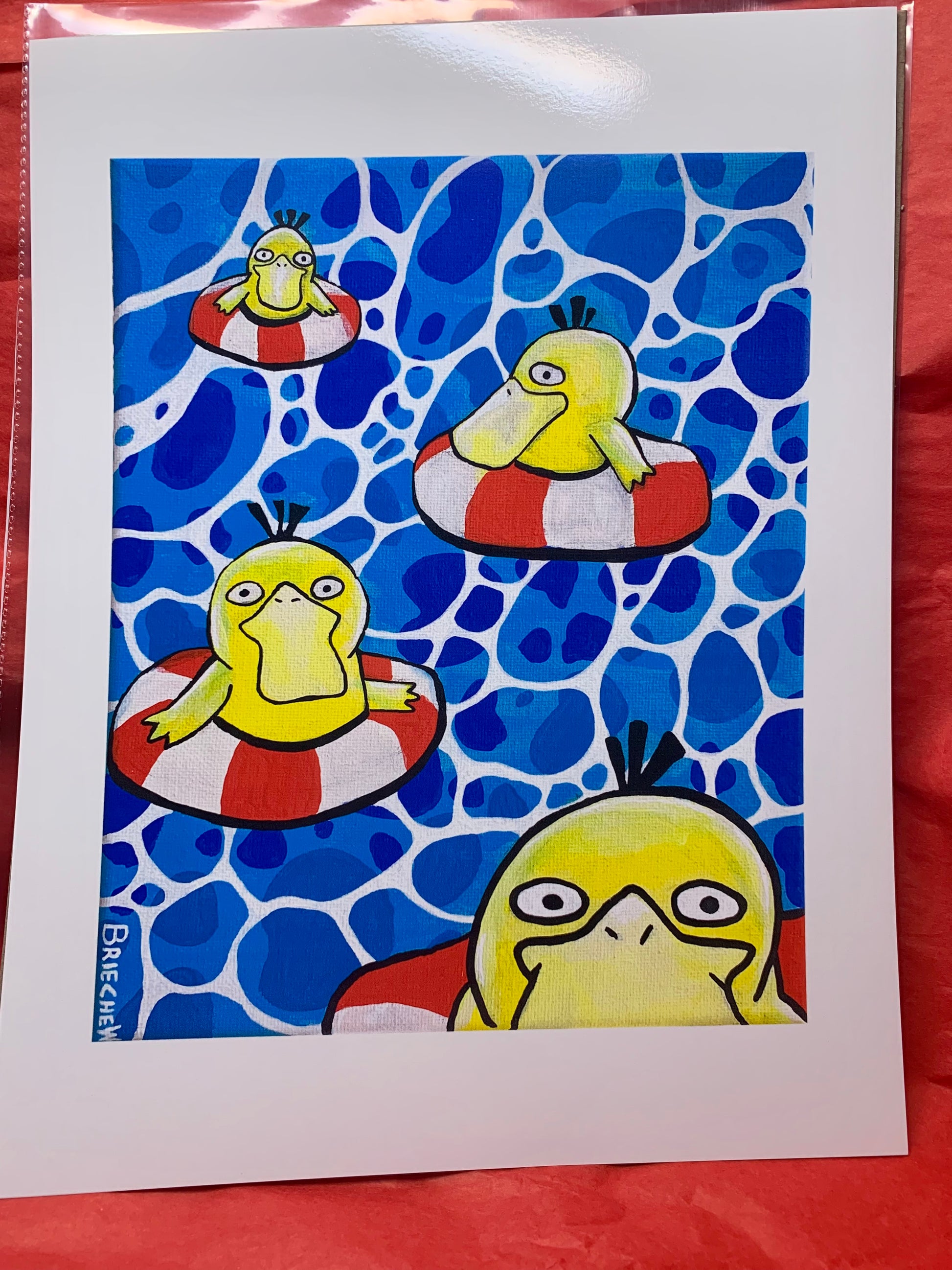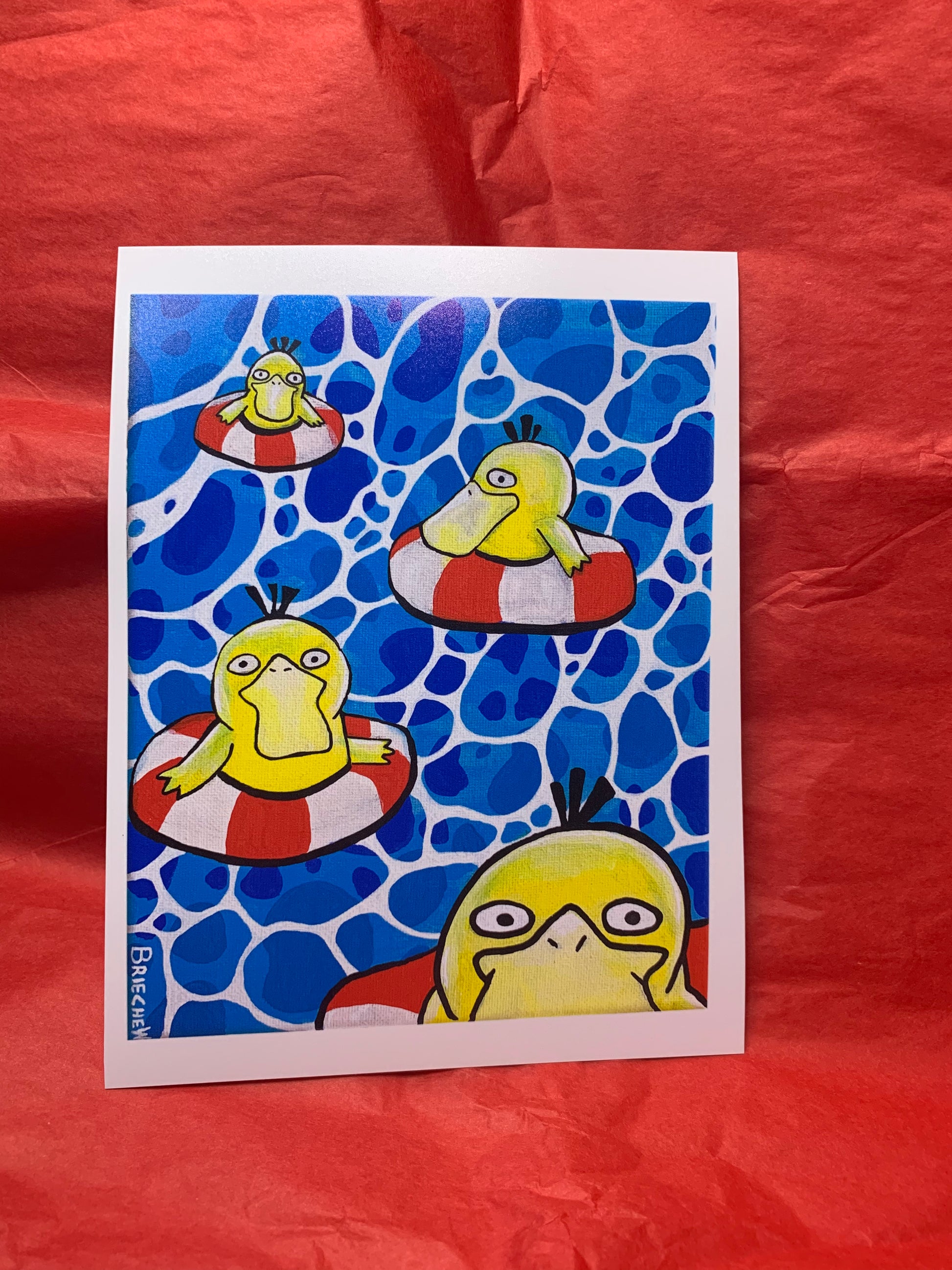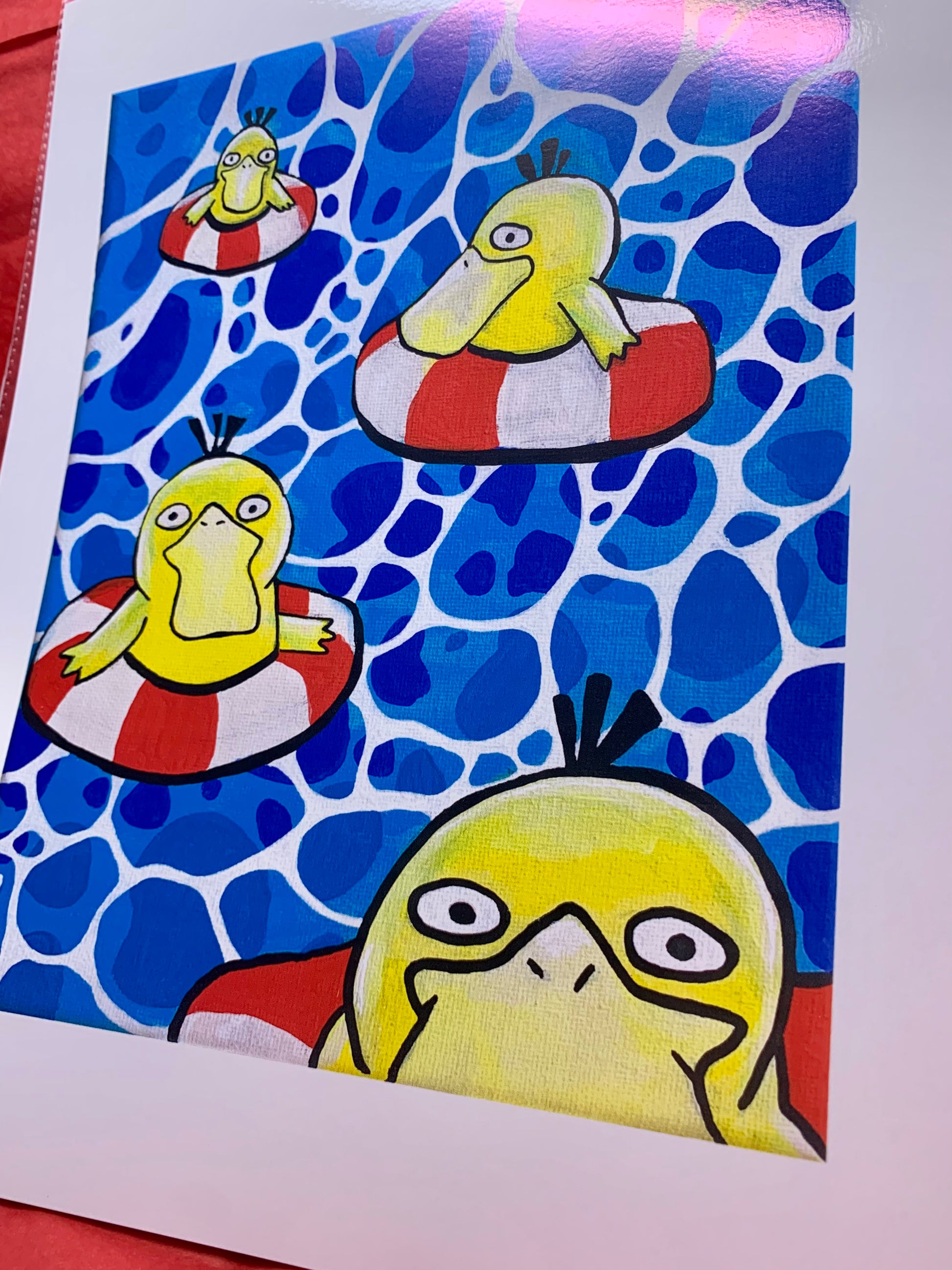 Summer Psyduck prints are available in two sizes! You can choose a full page or half page print. Each are printed on quality print paper with a gloss finish.
